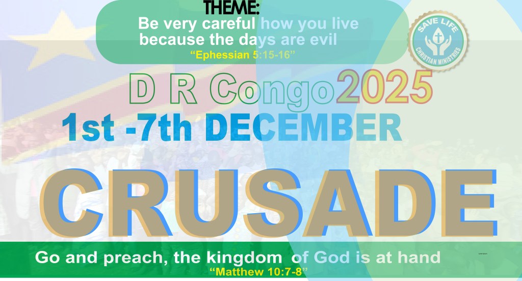 We are excited to announce our upcoming Gospel Crusade in the Democratic Republic of Congo, scheduled for December 1st–7th, 2025. Under the theme “Be very careful how you live, because the days are evil” (Ephesians 5:15), we believe God is going to move mightily to transform lives and bring many to the saving knowledge of Jesus Christ.